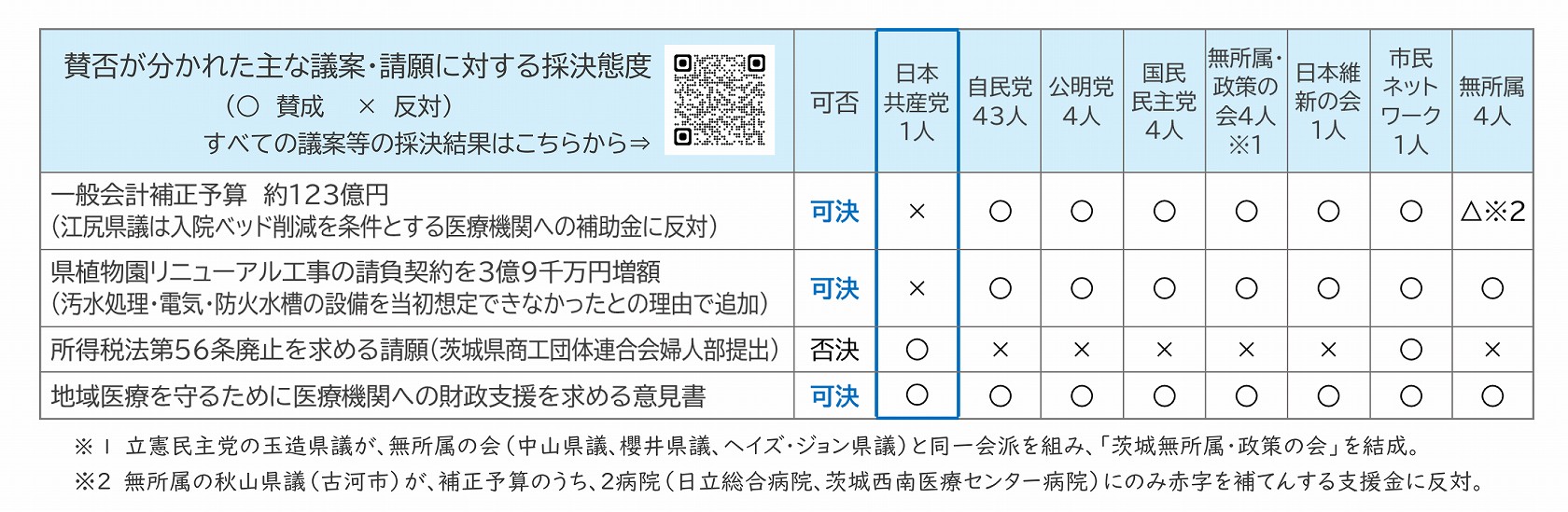 江尻県議は、「戦前、地方自治体が国策に従い、住民を戦争に駆り立てた反省から、憲法に『地方自治の本旨』が明記された。基地と共用の茨城空港が軍事利用されないよう国に要請を」とただしました。